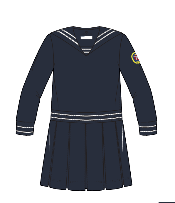 This long-sleeve sailor dress was custom-designed for Evans School and adds subtle enhancements to the traditional design. With distinctive piping and stripe detailing, tech fabric delivers both comfort and a polished appearance.