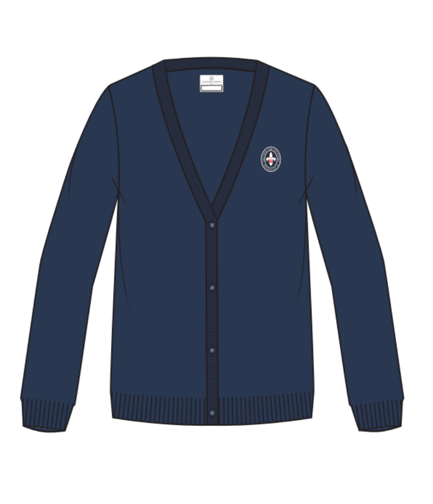 This classic four-button cardigan offers the perfect combination of tradition and comfort. Crafted from an exceptionally soft knit blend, this medium-weight layer features the school logo embroidered on the front.