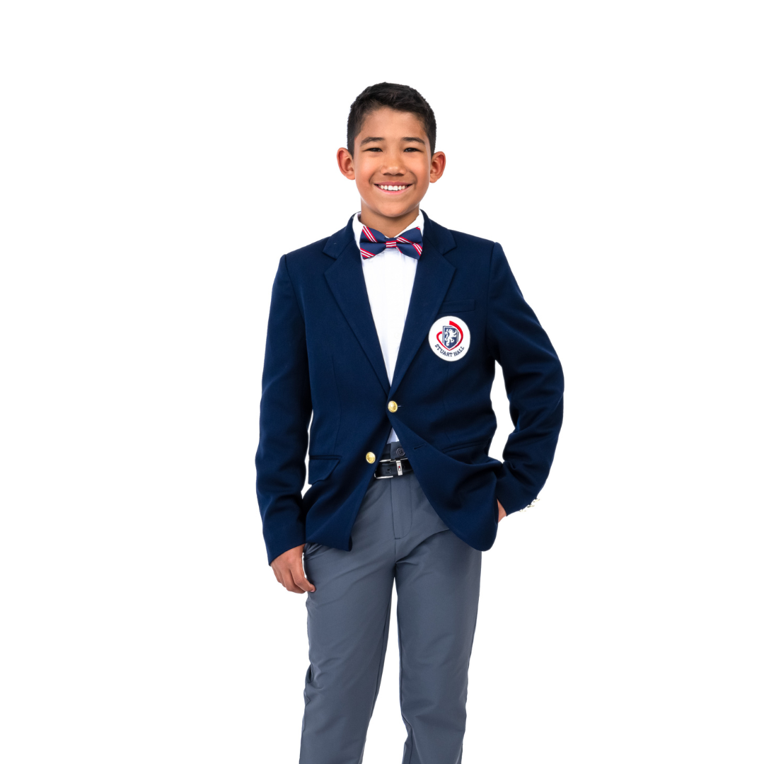 Meet the blazer that's rewriting dress uniform rules. This smart-looking standout offers all the polish of traditional blazers without the stiffness that usually accompanies them. With fabric that flexes and moves as naturally as kids do, it bounces back even after being crammed into a backpack between formal occasions. Skip the dry cleaner and simply toss it in the washing machine; hang to dry.